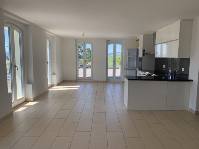 Avec vue panoramique sur le lac, les Alpes et les vignes, magnifique appartement-terrasse de 4,5 pièces