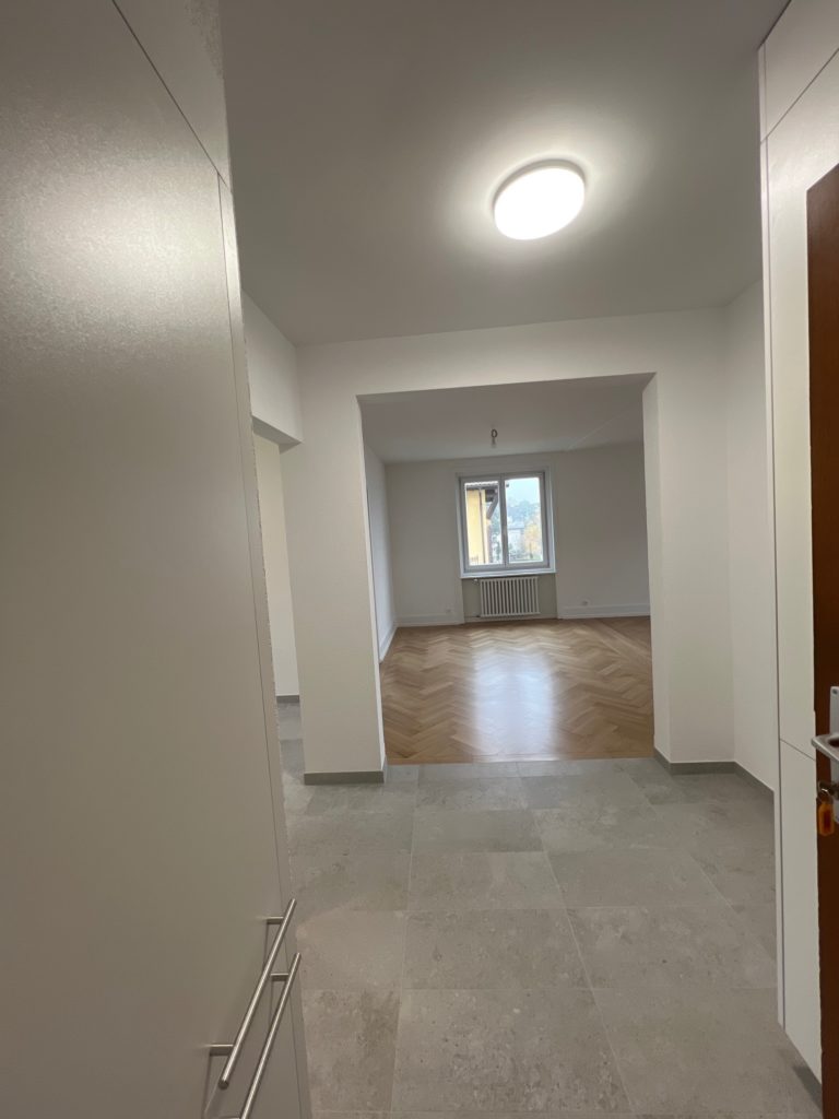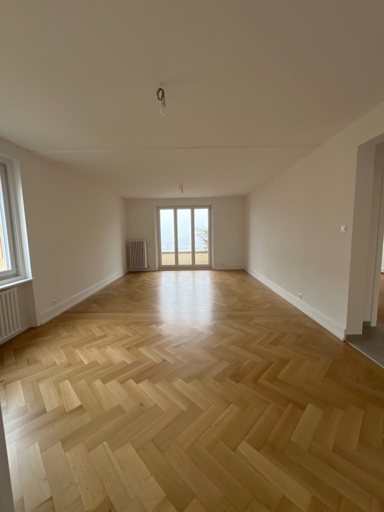 Appartement entièrement rénové avec vue imprenable sur le lac et les Alpes de 3,5 pièces situé au 2ème étage, comprenant :