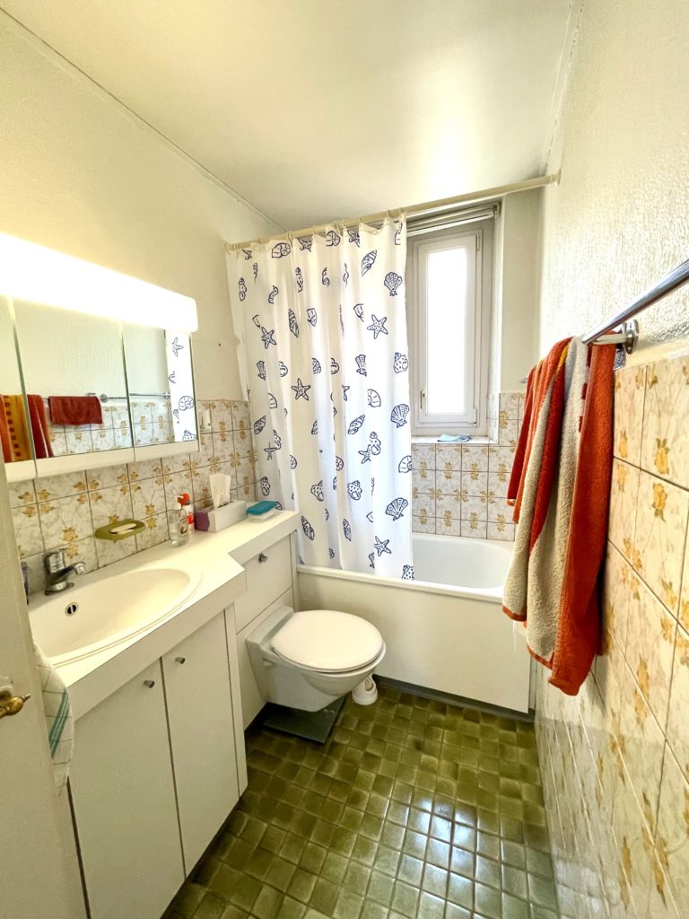 - Salle d’eau commune avec baignoire, WC, lavabo et fenêtre